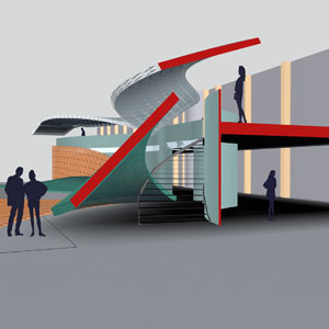 BMW Pavillon, IAA 2001 Frankfurt Hüllendurchstöße, Außentreppen